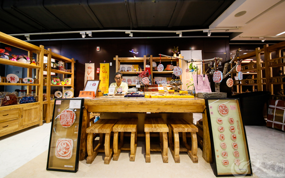 在潛心研究“磚刻”的這幾十年里,唐福河也遇到過不少質(zhì)疑,“搞篆刻,從古至今都是4公分見方的印章,你這個(gè)磚頭可真夠嗆!钡恐还蔁釔鄣膭蓬^,硬是堅(jiān)持了下來,沒想到還真琢磨出了“磚刻”的門道。如今的唐福河不僅研究“磚刻”本身,還發(fā)展了不少文化衍生產(chǎn)品。在百工坊的展示柜上,記者看到不少封泥作品,有的封在酒壇上,有的封在請柬開口處。據(jù)他介紹,很多人覺得封泥十分具有紀(jì)念意義,所以特地到他這里來訂做。