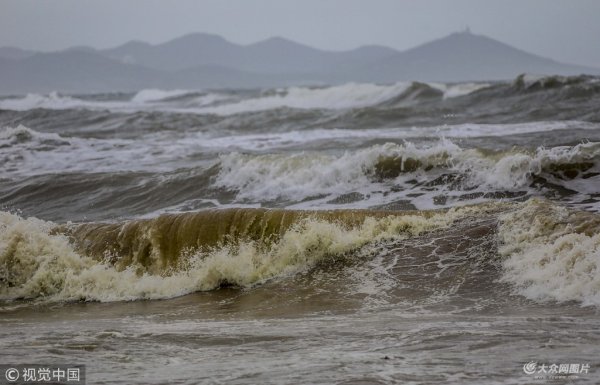 受臺風“摩羯”影響 青島海濱巨浪滾滾