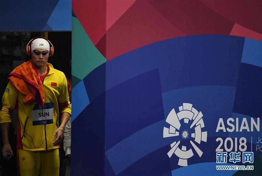 8月19日,中國選手孫楊在賽前入場。當(dāng)日,在第18屆亞運會男子200米自由泳決賽中,中國選手孫楊以1分45秒43的成績奪冠。新華社記者李響攝