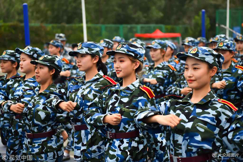 2018年9月14日,濟(jì)南,2018級(jí)山東藝術(shù)學(xué)院的3000余名新生正在體育場(chǎng)開(kāi)始大學(xué)“第一課”——軍訓(xùn)。