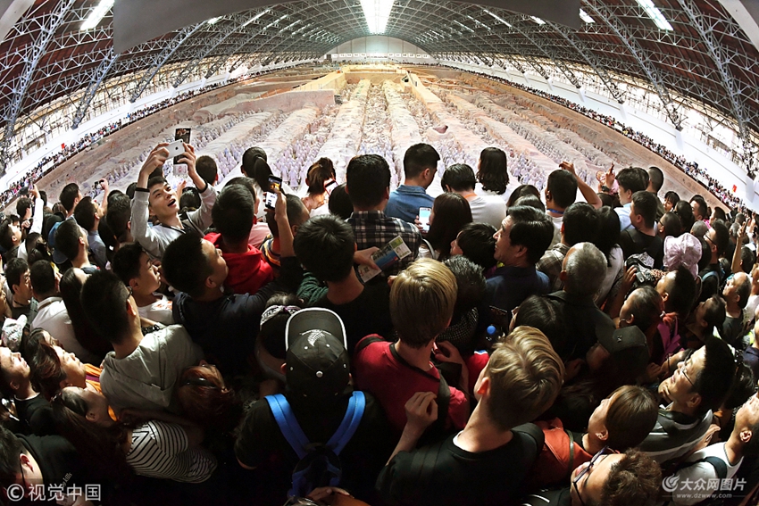 2018年10月3日,陜西西安,臨潼區(qū)的兵馬俑景區(qū)熱度不減,一再“爆棚”。