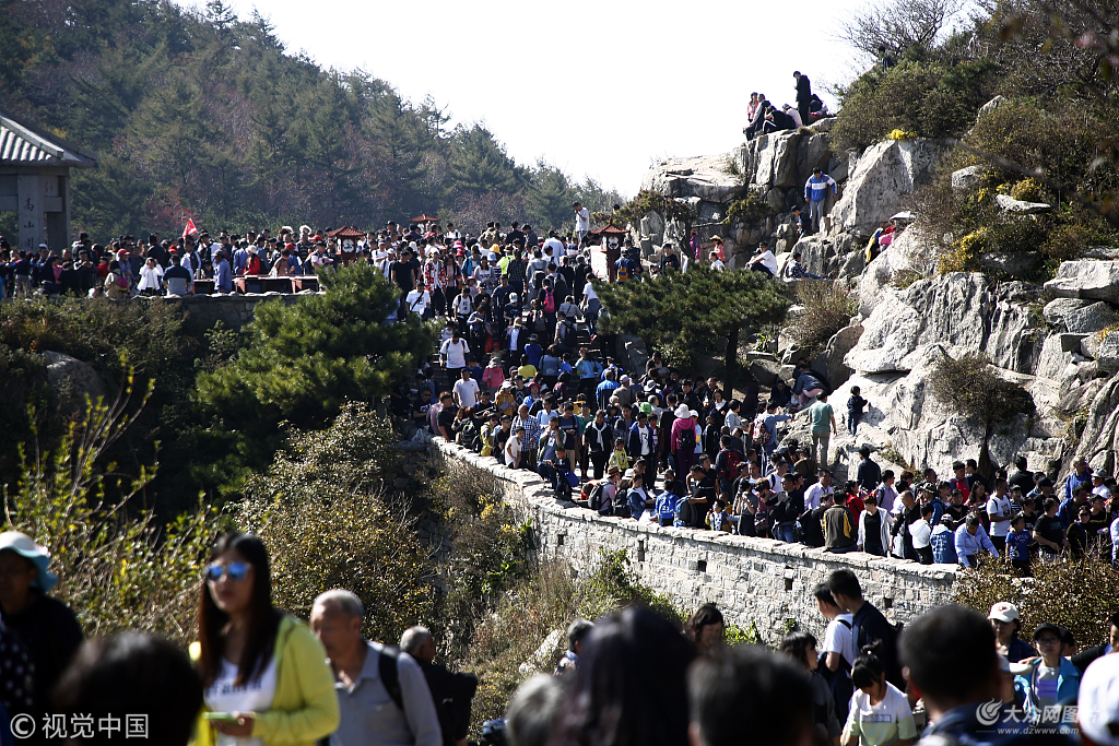 2018年10月2日,山東泰安,國慶小長假即將結(jié)束,山東泰山景區(qū)共接待游客32.1619萬人次,同比增長10.57%,軍大衣、登山棍成了登山游客必備,同樣在登山盤道兩側(cè)也可以看到不少抱著軍大衣席地而睡休息的游客。