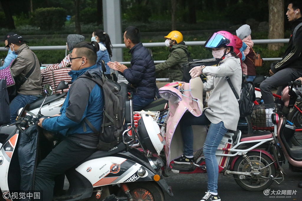 2018年10月9日,山東濟南,泉城路上,不少上班族已經穿棉衣“全副武裝”出行。一場秋雨后,濟南的氣溫如同斷崖式過山車,讓市民感受到冬日的涼意。
