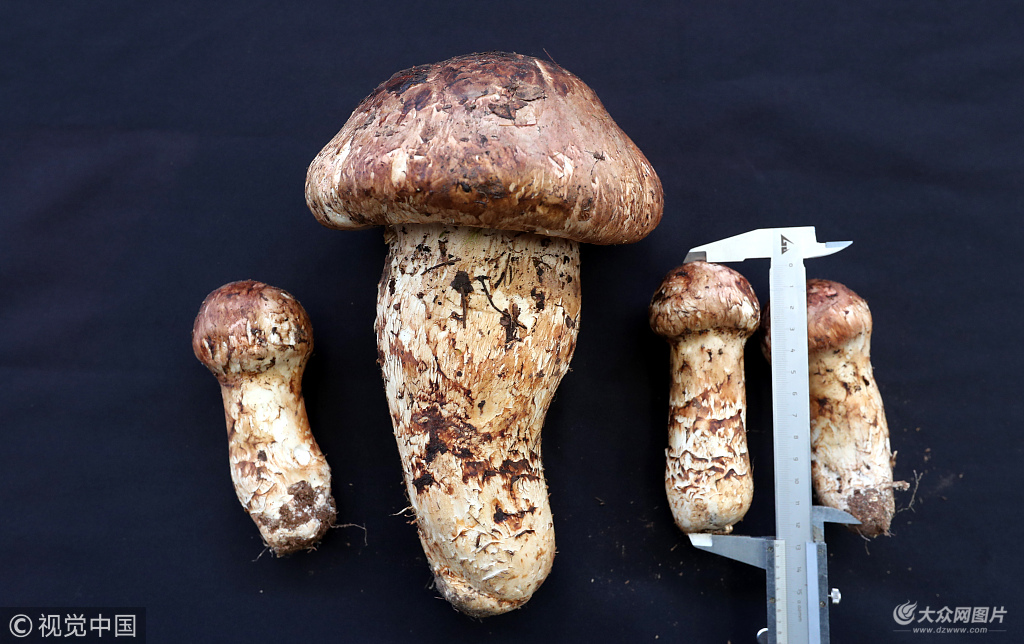 2018年10月19日,昆明,“松茸王”現(xiàn)身云南木水花野生菌交易市場。一朵產(chǎn)自大理巍山的“松茸王”經(jīng)測量長度達34厘米,超出一般松茸長度的2-4倍多。