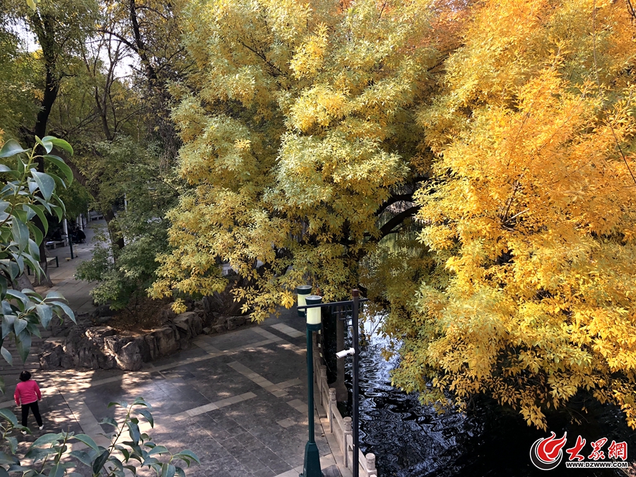 大眾網(wǎng)濟(jì)南10月30日訊 時(shí)值深秋,秋高氣爽。濟(jì)南護(hù)城河兩岸的樹葉漸漸變黃,在黑虎泉北路與興華街交匯處,一棵老樹滿身“黃金甲”,美不勝收。(大眾網(wǎng)-山東24小時(shí)記者李金珊)