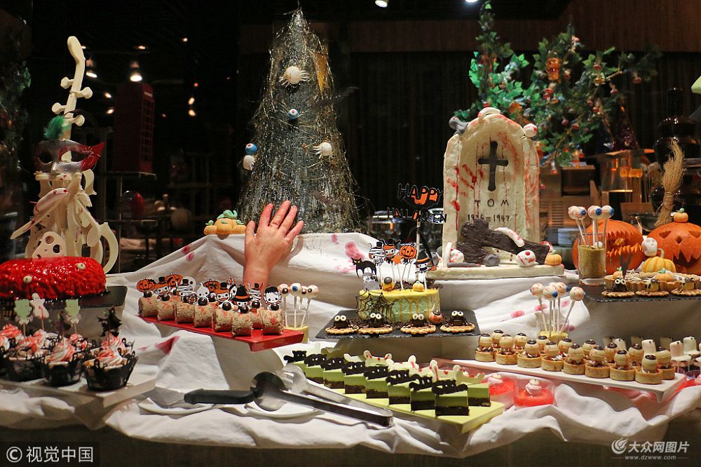 2018年10月31日,山東煙臺一五星級酒店的廚師們用食材制作了多種外形血腥恐怖的菜肴慶祝萬圣節(jié),令人驚悚不已。
