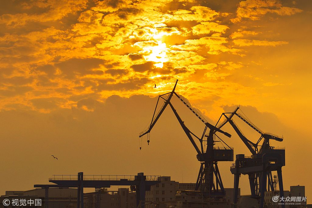 2018年11月11日,在青島膠州灣畔拍攝的高積云晚霞美景。