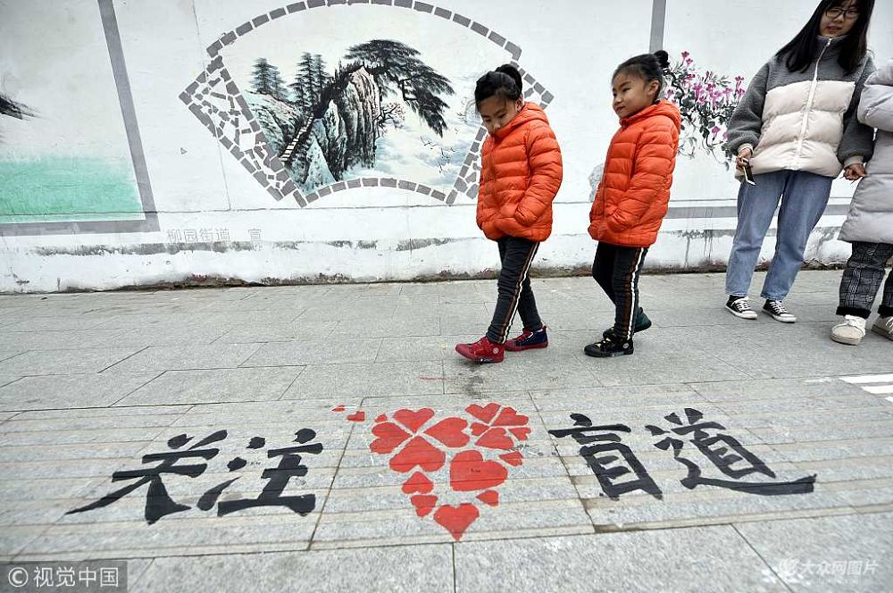 2018年11月18日,山東聊城大學(xué)美術(shù)學(xué)院“與美同行”志愿服務(wù)實(shí)踐隊(duì)在聊城市市區(qū)街頭盲道上舉辦了“關(guān)愛盲人,點(diǎn)亮心中一盞燈”主題實(shí)踐活動(dòng)。志愿者與市民和小學(xué)生們一起用顏料、水彩筆手工繪制出10多副關(guān)愛盲人,勿占盲道等主題的卡通動(dòng)漫圖案。既美化了盲道又可以起到宣傳呼吁人們勿占盲道,關(guān)愛盲人的效果。