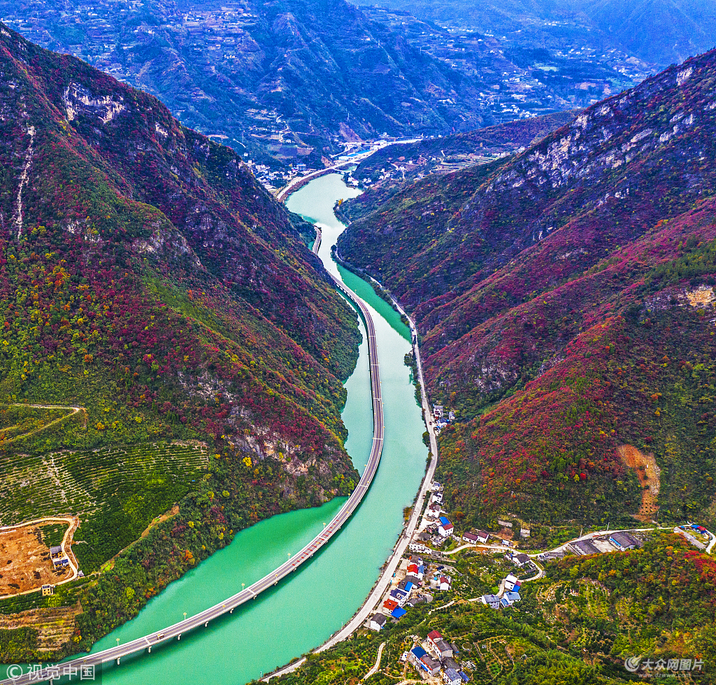 2018年11月19日,湖北省宜昌市興山縣被譽(yù)為“最美水上公路”的古昭公路秋色宜人,峽谷兩岸紅葉遍山,層林盡染。
