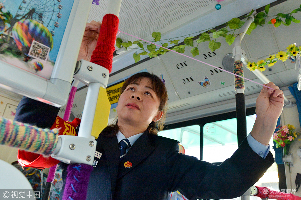 2018年11月27日,杭州,李則紅在裁剪毛線套。