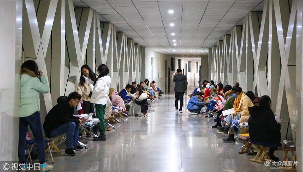 2018年11月28日,青島,山東科技大學(xué),距離考研不到一個月,考研族們在樓道“挑燈夜戰(zhàn)”,抓緊最后時間復(fù)習(xí)。