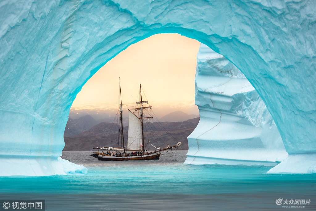 2018年12月4日訊,近日,一名攝影師在格陵蘭島捕捉到了一副風(fēng)景如畫的景象,一艘雙桅帆船精完美地嵌入了格陵蘭島沿岸一座巨大的水藍(lán)色冰山中間的拱門之中,看起來既精致又美妙。據(jù)悉,這名攝影師名叫詹姆斯拉什沃思(James Rushworth),來自英國。當(dāng)天,32歲的詹姆斯為了這張合影,冒著低至零下10攝氏度的氣溫在格陵蘭島的海上耐心地等待著,當(dāng)雙桅帆船正好位于冰山拱門中間,他按下了快門。照片中,長108英尺(約33米)的雙桅帆船在300英尺(約91.5米)高的冰山襯托之下,顯得十分袖珍,令人不禁感嘆。對此,詹姆斯表示:“我們出海航行時恰巧看到了這些大冰山。拍照時我在那艘雙桅帆船的姊妹船上,跟著帆船剛好可以確定拍攝角度。我們十分小心,不能離得太近,怕冰山會突然倒塌,掀起巨大海浪。拍照前我注意力特別集中,拍完了我就坐在那兒欣賞冰山美景了,真的實(shí)在是太美了!