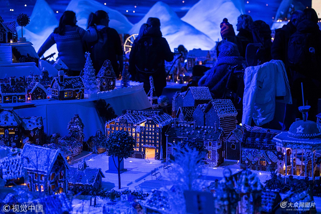 當(dāng)?shù)貢r(shí)間2018年12月19日,挪威卑爾根,當(dāng)?shù)嘏e辦傳統(tǒng)“姜餅城”展覽。