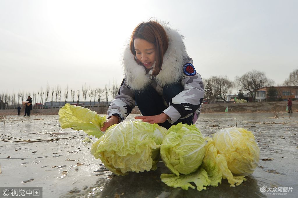 2019年1月9日,青島,城陽區(qū)野生動植物保護(hù)協(xié)會自愿者在冰封的河面上為候鳥投食。