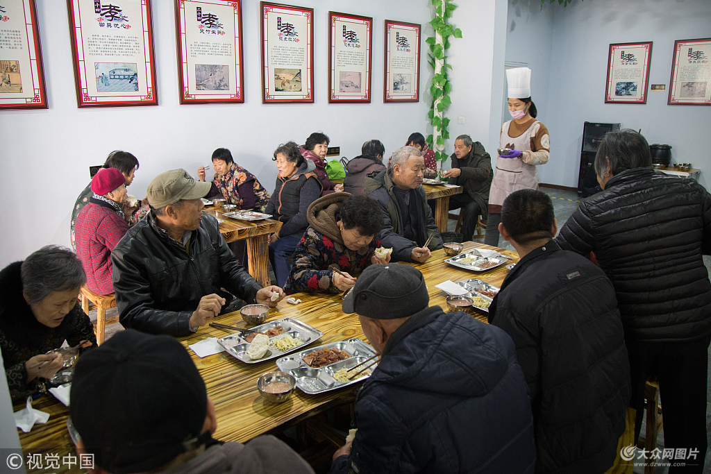 2019年1月18日,山東棗莊,在“一元敬老餐廳”就餐的居民年齡基本上都在60歲以上,兒女忙于工作中午一般不回家,有很多老人身體不便不能自己做飯,吃飯只能“應付”了事,老人們經常炒一頓菜吃三頓,或者就著剩菜吃饅頭也算一餐,饑一頓飽一頓,更談不上營養(yǎng)和健康。為此,該社區(qū)物業(yè)領導商討決定推出“敬老一元餐廳”。