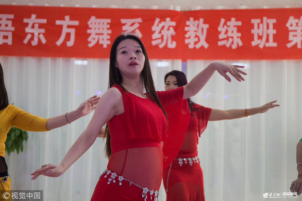2019年1月22日,山東棗莊,33歲的棗莊女子林語(yǔ)在懷孕6個(gè)多月時(shí)每天仍堅(jiān)持登臺(tái)演出訓(xùn)練,其中包括表演舞蹈中的“身體的大波浪”等高難度動(dòng)作。