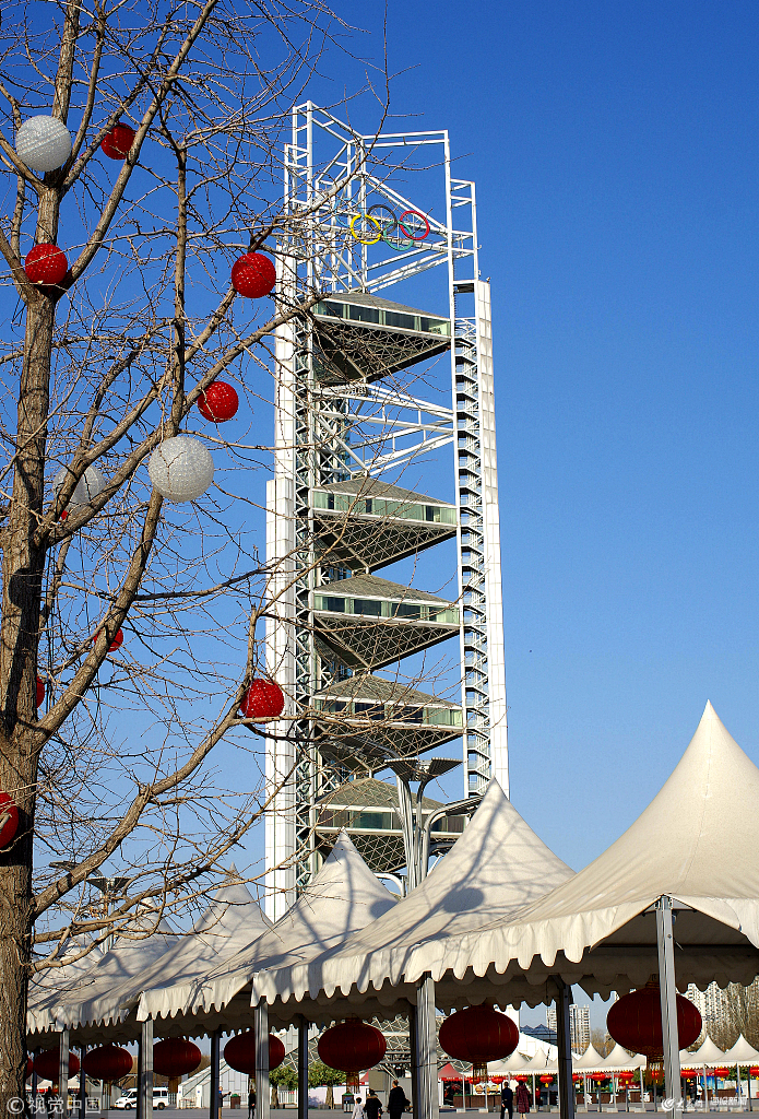 2019年1月23日,北京奧林匹克公園景觀大道紅燈籠高掛,洋溢著新年的喜慶氛圍。