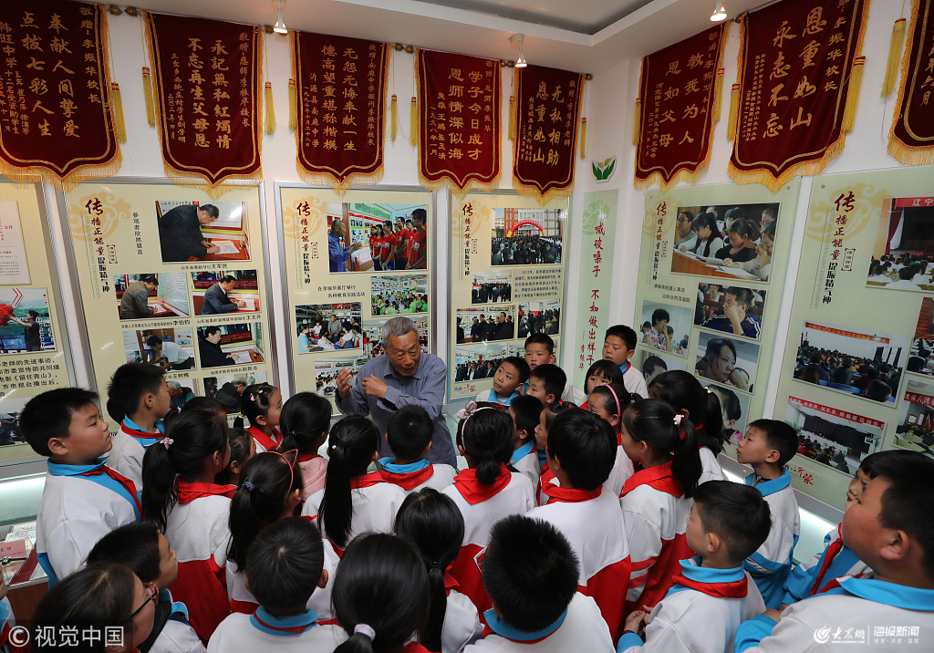 2018年10月24日,山東淄博,在李振華事跡展覽館里,李振華現(xiàn)身說法講述親身經(jīng)歷的故事,引導(dǎo)孩子們珍惜來之不易的學(xué)習(xí)機(jī)會。
