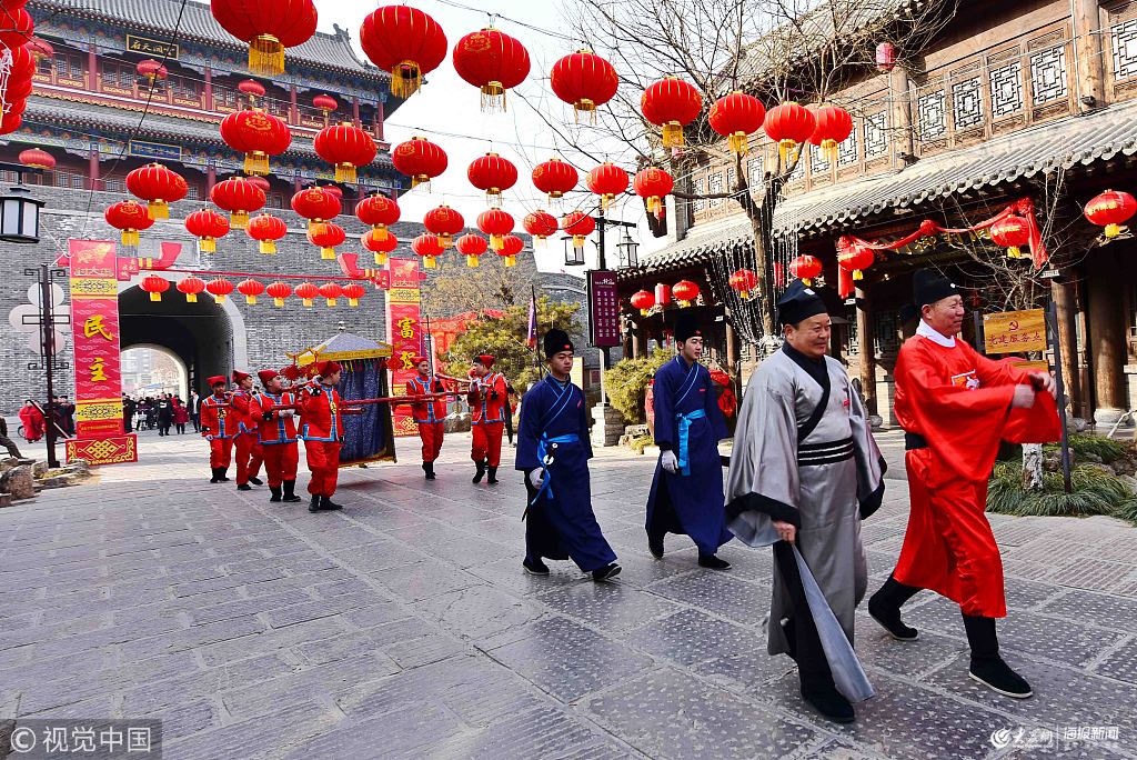 2019年2月4日,當(dāng)日是立春,山東省濰坊青州市開展民俗展演迎立春活動(dòng),知府迎春、古服展示、喜慶秧歌等傳統(tǒng)民俗活動(dòng)輪番上演,喜迎春日到來。