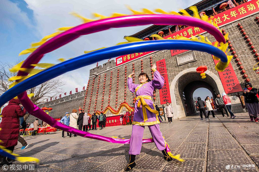 2019年2月7日,大年初三,在山東省濰坊市青州古城景區(qū)的廟會上,各類民間藝人施展技藝,吸引眾多市民前來觀光游玩,感受濃濃年味。
