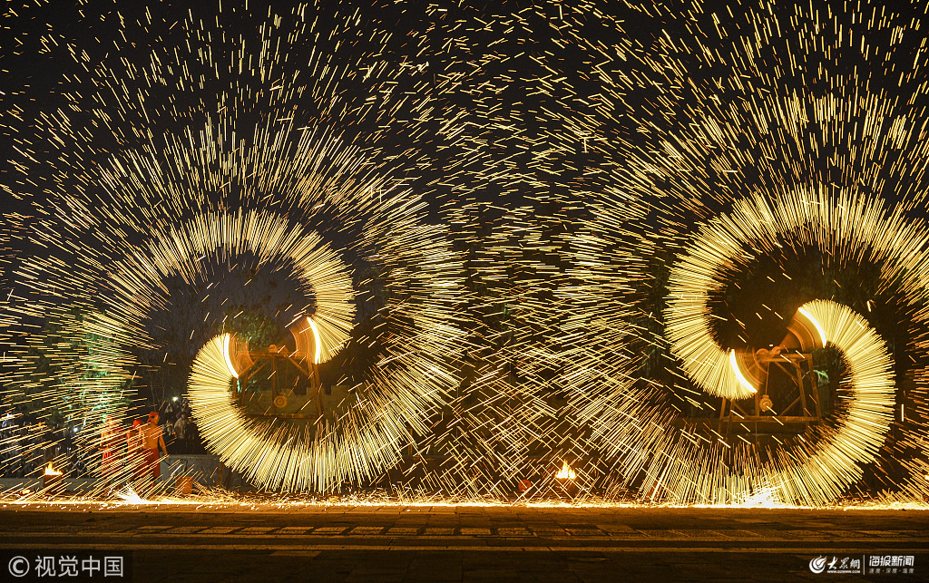 山東棗莊:火龍鋼花鬧新春