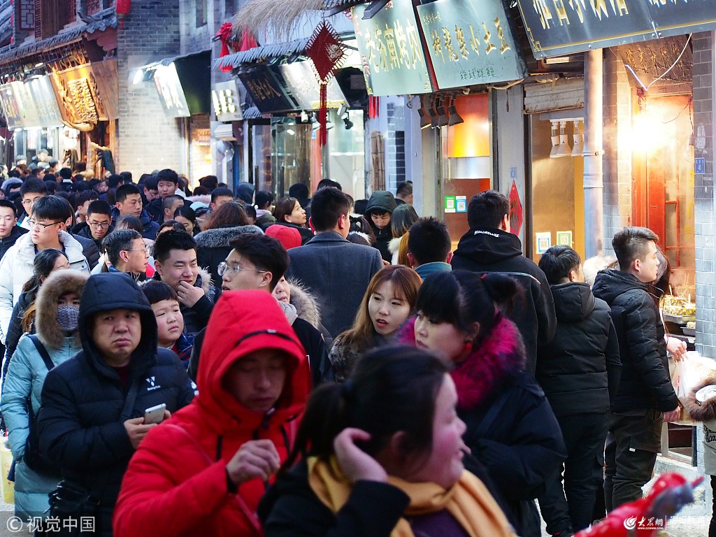 2019年2月8日,大年初四的濟(jì)南夜色初上寒氣逼人,明清老街芙蓉街迎來更多游客。