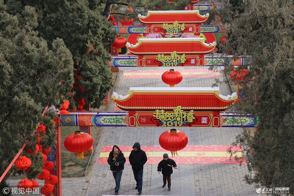 2019年2月9日,山東泰安。迎新年,逛岱廟是當(dāng)?shù)厥忻駛鹘y(tǒng)習(xí)俗。春節(jié)期間,岱廟景區(qū)處處張燈結(jié)彩,人潮如織,洋溢著濃濃的節(jié)日氣氛。