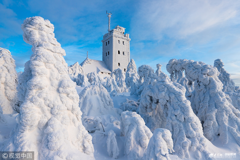 2019年2月9日訊(具體拍攝時(shí)間不詳),這座看似超現(xiàn)實(shí)的山被4英尺厚的雪覆蓋后,就像童話般的冬日仙境。森林,甚至包括氣象站都被雪完全覆蓋,樹木和其他植被幾乎無(wú)法辨認(rèn)。這些令人驚嘆的大雪照片是在德國(guó)薩克森的4000英尺高的費(fèi)希特爾伯格山上拍攝的。雜貨商Christoph Schaarschmidt從家里出發(fā),經(jīng)過(guò)一個(gè)半小時(shí)的跋涉,穿過(guò)厚厚的積雪到達(dá)氣象站,捕捉到了這一不可思議的場(chǎng)景。圖片作者:Solent News/視覺(jué)中國(guó)