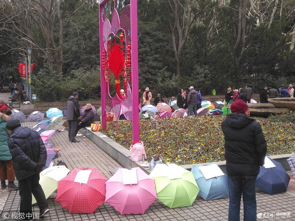 2019年2月16日,當(dāng)天是春節(jié)過后首個(gè)周末,上海人民公園“相親角”人頭攢動(dòng)。盡管天氣陰冷,一些家長(zhǎng)紛紛趕來,撐開五顏六色的傘將子女信息公開,為子女尋找對(duì)象,場(chǎng)面壯觀。