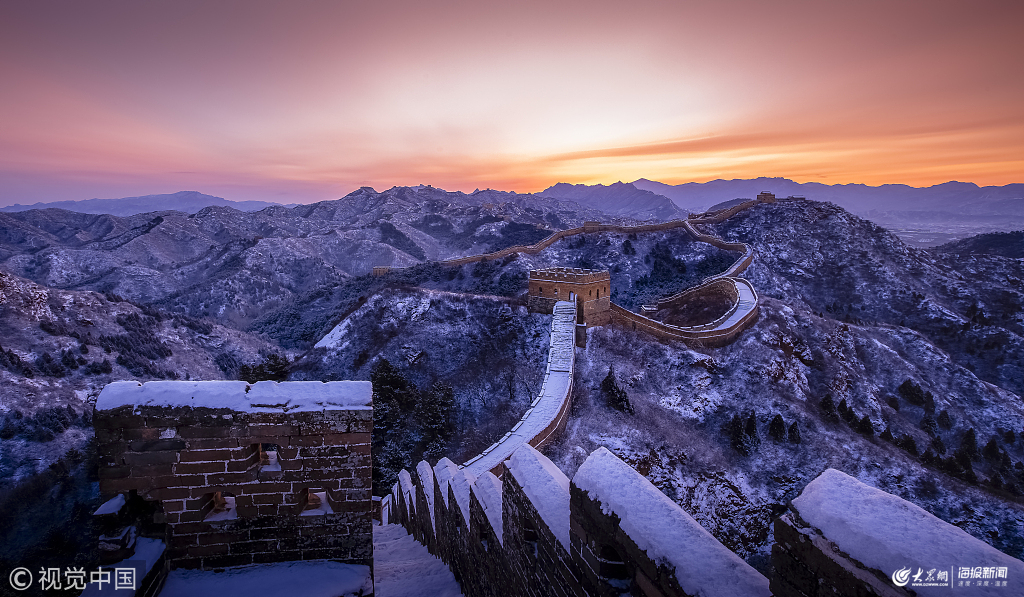 2019年2月15日,河北承德,航拍雪后金山嶺長城,銀裝素裹,分外妖嬈。