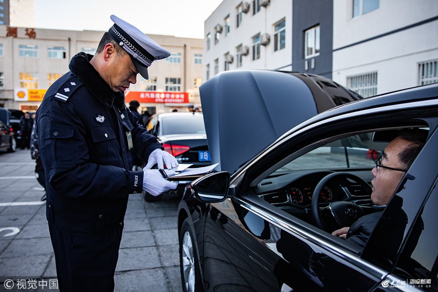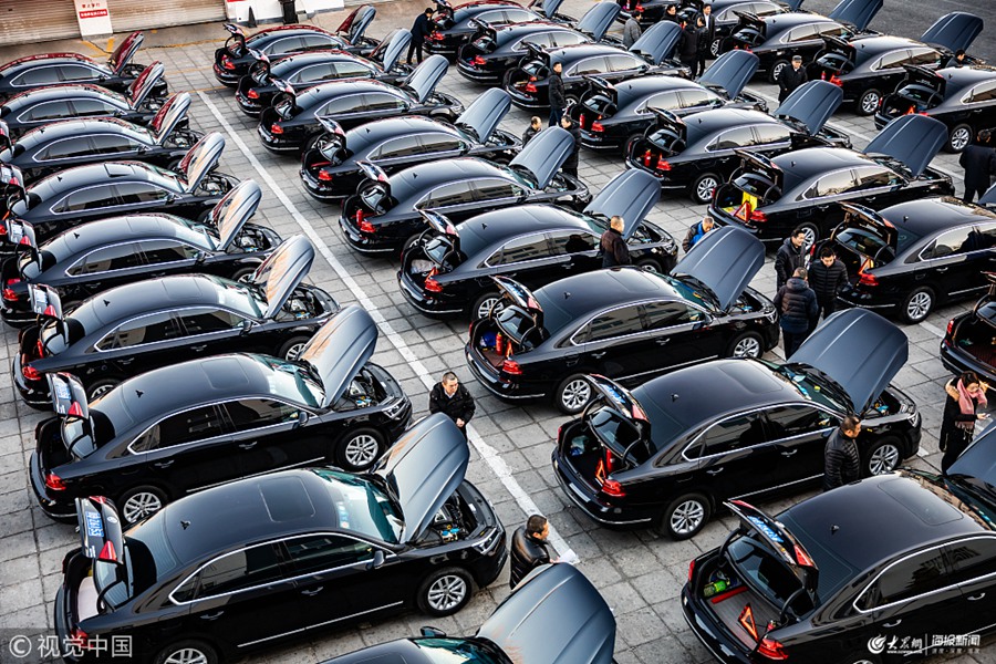 2019年2月17日,北京,市交管部門在位于大屯的亞運村機動車檢測場,對北汽集團準備為2019年全國“兩會”服務(wù)的車輛逐一進行全面體檢,確!皟蓵庇密嚨陌踩院涂煽啃。