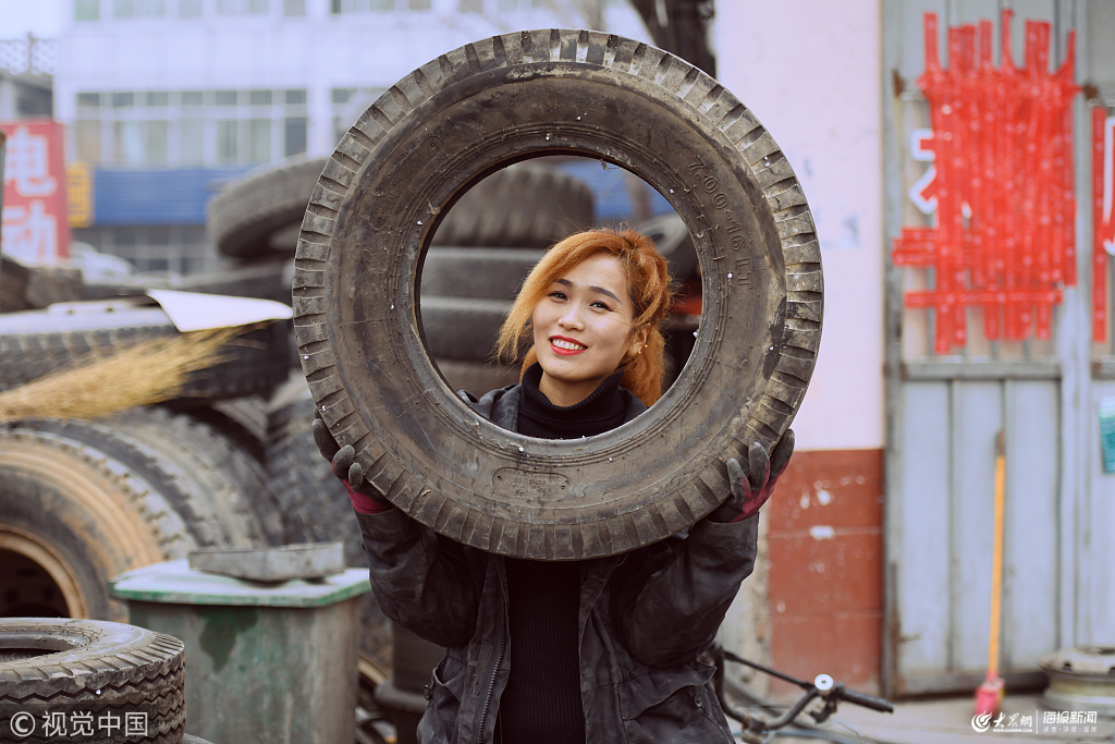 濟(jì)南:補(bǔ)胎女漢子輕松拿下300斤輪胎 直播平臺(tái)化身愛(ài)美小女