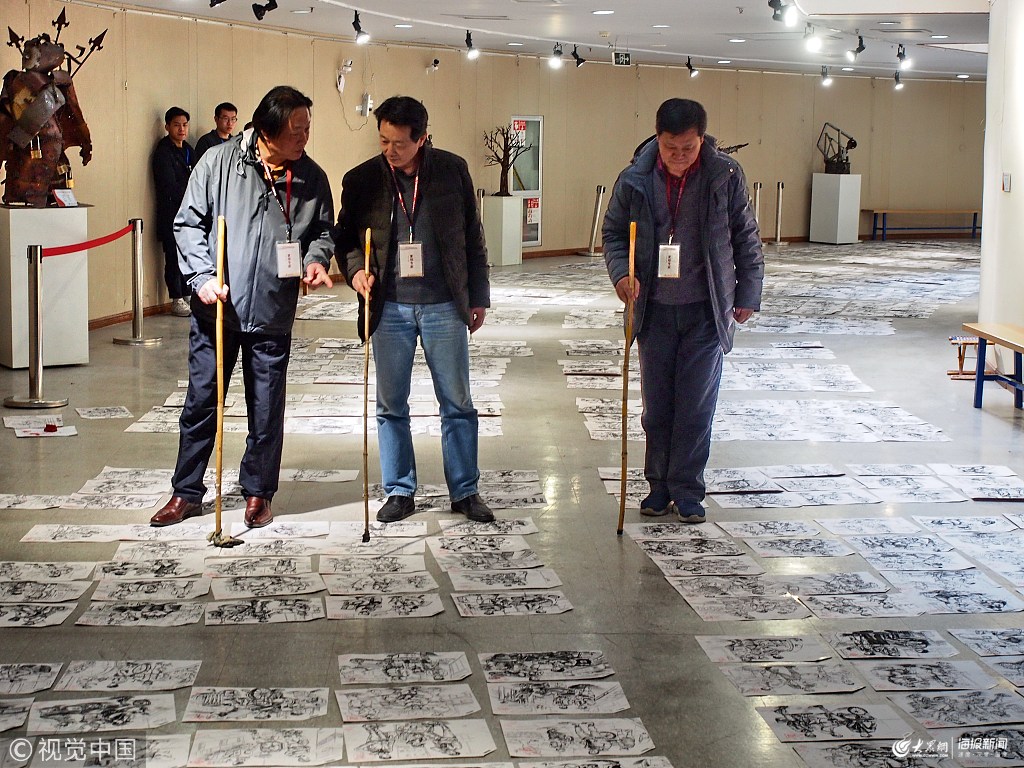 2019年2月28日,濟南,圖書館的地面上數(shù)千份素描試卷平展地攤開,由專家教授組成的評委小組逐幅考卷仔細端詳,進行分類歸檔以及復(fù)核,將試卷按照藝術(shù)水平分組打分。