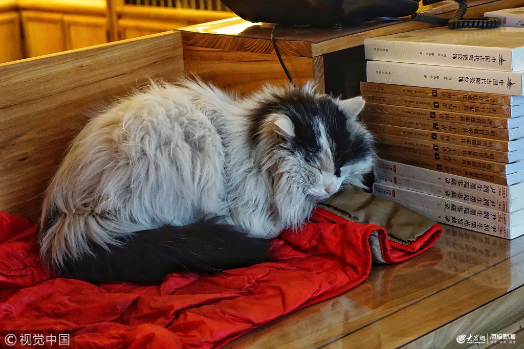2019年3月12日,北京,故宮御貓“鰲拜”成為景仁宮·故宮書店里的“常駐”客人,同時(shí)也是書店里一道獨(dú)具特色的風(fēng)景,不少市民特意為了“擼貓”而來(lái)。
