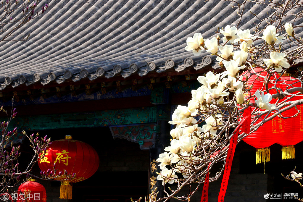 2019年3月16日,山東濟寧,在山東省鄒城市孟府,習儒館內的玉蘭花競相開放。