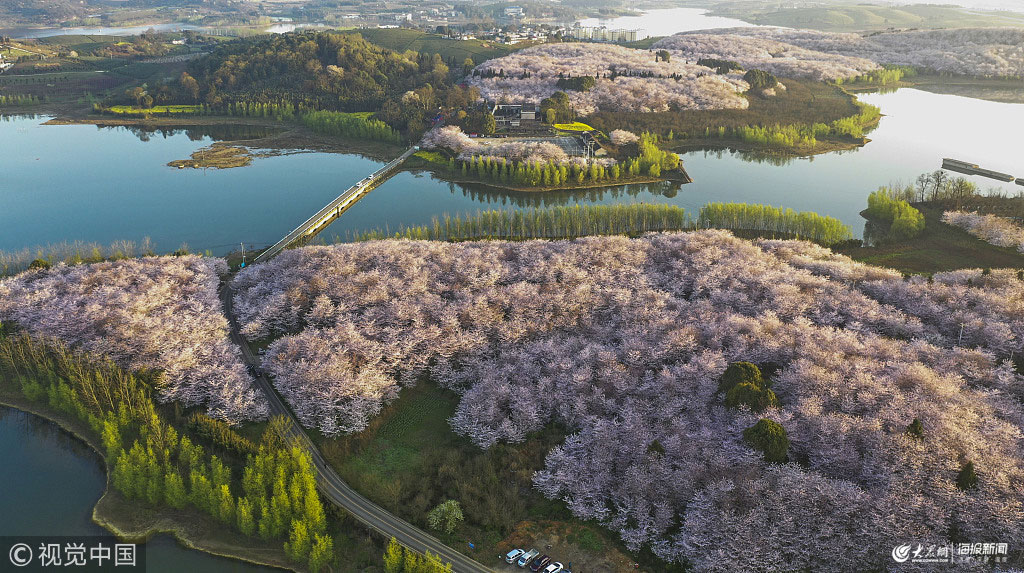 2019年3月20日,貴陽,在貴安萬畝櫻花園拍攝的櫻花。貴安萬畝櫻花園時下正是最佳觀賞期,每天吸引省內(nèi)外游客達十余萬。