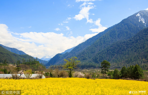 西藏林芝:油菜花開滿目春 金黃燦燦美如畫