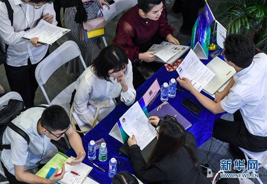 4月14日,在第十七屆中國國際人才交流大會設(shè)置的招聘會上,求職者與用人單位工作人員交流。當日,第十七屆中國國際人才交流大會在深圳啟幕,來自50多個國家和地區(qū)的4000多家專業(yè)機構(gòu)和組織、4萬余名海內(nèi)外政府代表、專家學者、高端人才應邀參展參會。 新華社記者 毛思倩 攝