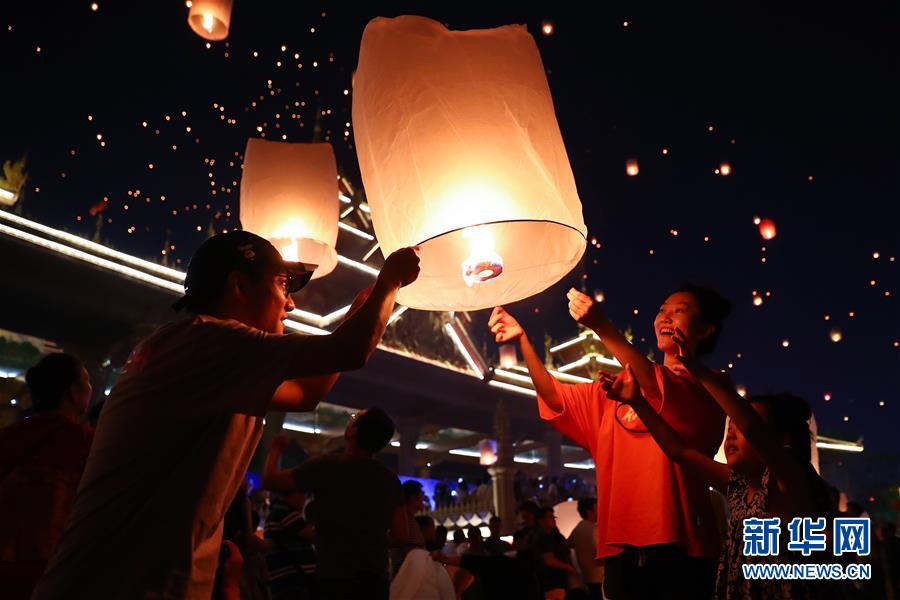 4月13日晚,人們在西雙版納的瀾滄江畔放飛孔明燈。當(dāng)日,為期3天的云南省西雙版納傣族自治州潑水節(jié)舉行。節(jié)日期間,當(dāng)?shù)貙⑴e辦劃龍舟比賽、燃放孔明燈、潑水狂歡等活動,慶祝傣歷新年。 新華社記者 張玉薇 攝