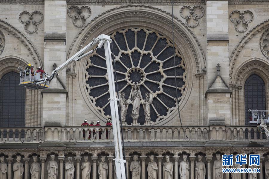 4月16日,在法國巴黎,消防人員在巴黎圣母院工作。 法國消防部門16日上表示,當(dāng)天上午10點(diǎn)巴黎圣母院的火情已經(jīng)全部撲滅,目前進(jìn)入對火災(zāi)調(diào)查和損失評估階段。 新華社發(fā)(亞歷山大·卡曼攝)
