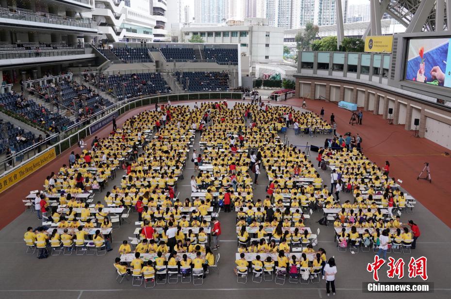 4月19日,香港賽馬會(huì)在沙田馬場(chǎng)舉行“同心創(chuàng)世界紀(jì)錄·最大規(guī)模的折紙課”活動(dòng),最終在1073名中小學(xué)生和市民的共同努力下,創(chuàng)造了“世界上最大規(guī)模的折紙課”這一新的健力士(吉尼斯)世界紀(jì)錄。圖為1073人同時(shí)在香港折紙藝術(shù)家陳柏熹的指導(dǎo)下折紙。中新社記者 張煒 攝