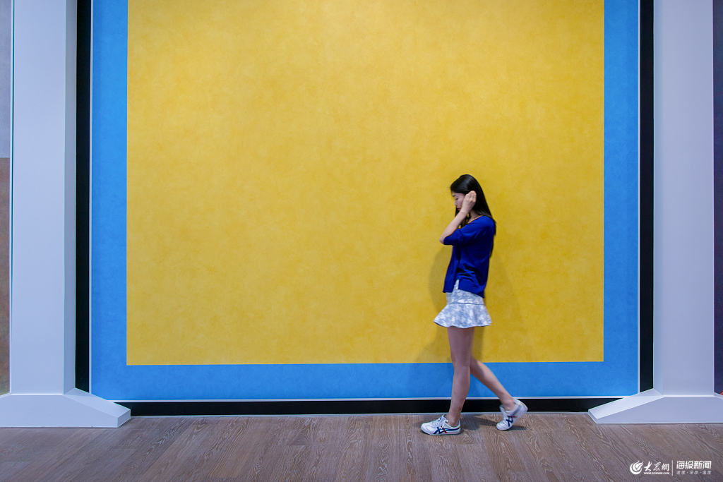 2019年5月24日,上海,當天下午,觀眾正在外灘虎丘路貝浩登畫廊內參觀“墻繪”藝術展。展覽現場大面積的幾何色塊給人以獨特的視覺沖擊力。