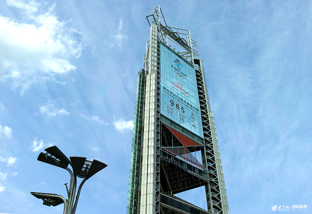 2019年5月26日,北京,奧體公園添新景,2022北京冬奧會(huì)倒計(jì)時(shí)裝置矗立在藍(lán)天白云下。
