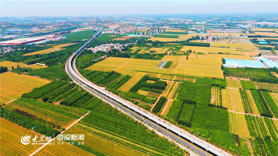 大眾網(wǎng)·海報(bào)新聞濟(jì)南5月29日訊(見習(xí)記者 解強(qiáng)民)每年的6月上中旬,是齊魯大地的“麥?zhǔn)铡睍r(shí)節(jié)。眼下“麥?zhǔn)铡痹诩矗瑢訉欲溊艘呀?jīng)籠蓋田間地頭,金黃色是這個(gè)時(shí)節(jié),最美的色彩!今天上午,記者來到長(zhǎng)清區(qū)玉符河流域,在500米高空,用無人機(jī)鏡頭記錄下“麥?zhǔn)铡鼻跋ψ铎n麗的景象。