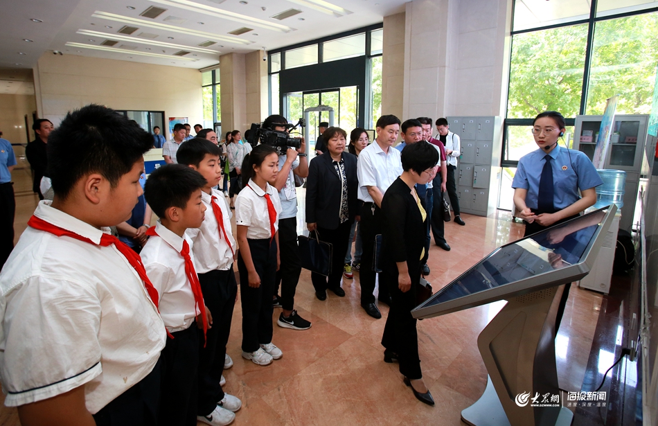 大眾網(wǎng)·海報(bào)新聞濟(jì)南5月31日訊(記者 儀首歌)5月30日,濟(jì)南市人民檢察院舉辦“攜手關(guān)愛、共護(hù)明天”檢察開放日活動(dòng)。邀請(qǐng)了龍奧小學(xué)學(xué)生代表及帶隊(duì)老師,濟(jì)南市教育局、共青團(tuán)、婦聯(lián)等部門相關(guān)負(fù)責(zé)人,部分人大代表、政協(xié)委員共20余人走進(jìn)濟(jì)南市檢察院,實(shí)地參觀了12309檢察服務(wù)中心、刑事辦案工作區(qū)、廉政教育基地、檢察榮譽(yù)室、檢察簡(jiǎn)史展廳和數(shù)字檢務(wù)調(diào)度指揮中心訊問室等司法辦案基礎(chǔ)設(shè)施。受邀代表們?nèi)媪私饬藱z察機(jī)關(guān)“擔(dān)當(dāng)作為、狠抓落實(shí)”的工作成效和創(chuàng)新舉措。