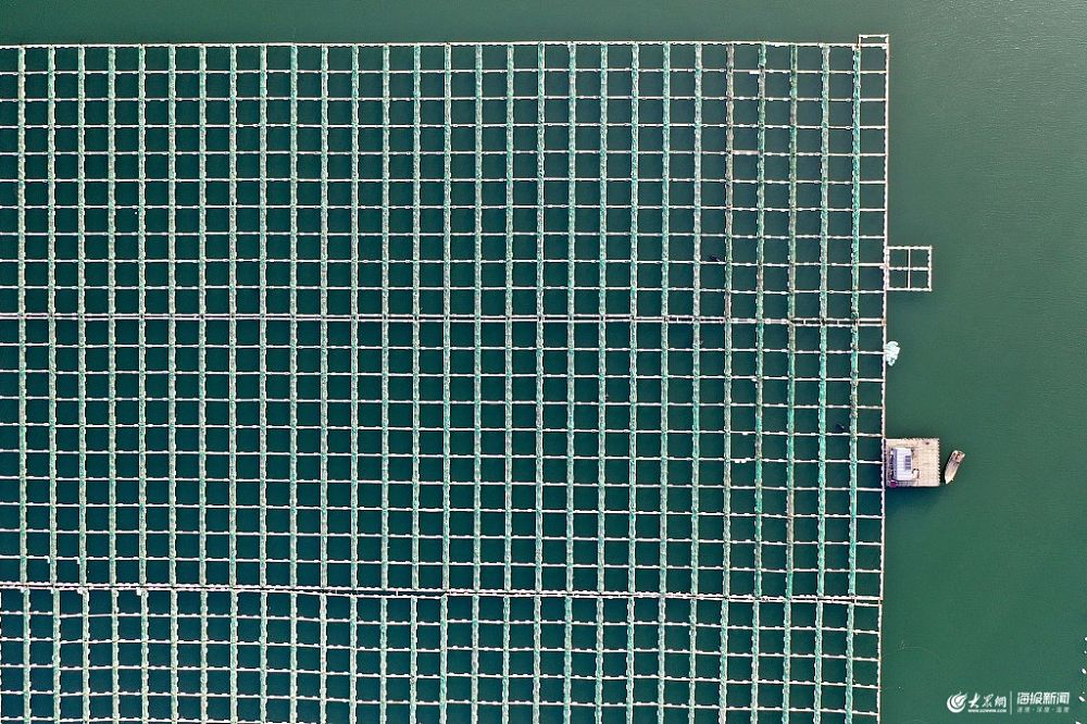 2019年6月11日,山東青島西海岸新區(qū)董家口經(jīng)濟區(qū),航拍陳家貢灣海上養(yǎng)殖場,鳥瞰如“海上糧倉”,風景如畫。