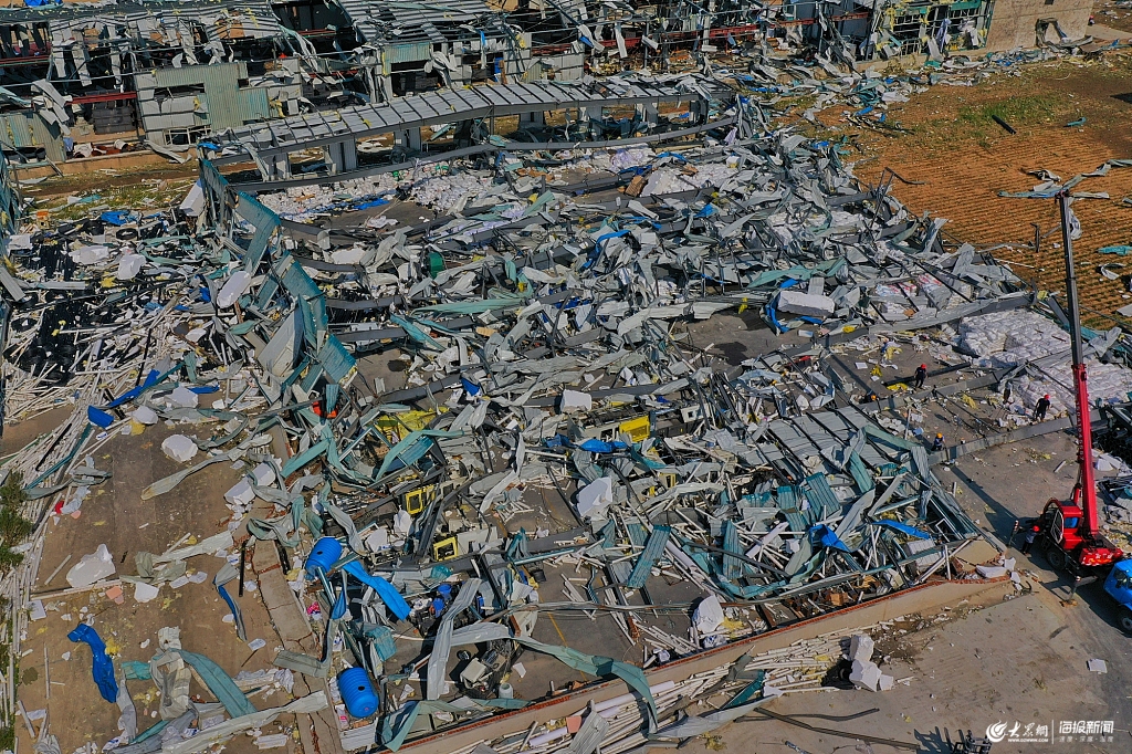 2019年7月4日,遼寧開原,航拍龍卷風襲擊過后,當?shù)夭糠址课、廠房等不同程度受損。