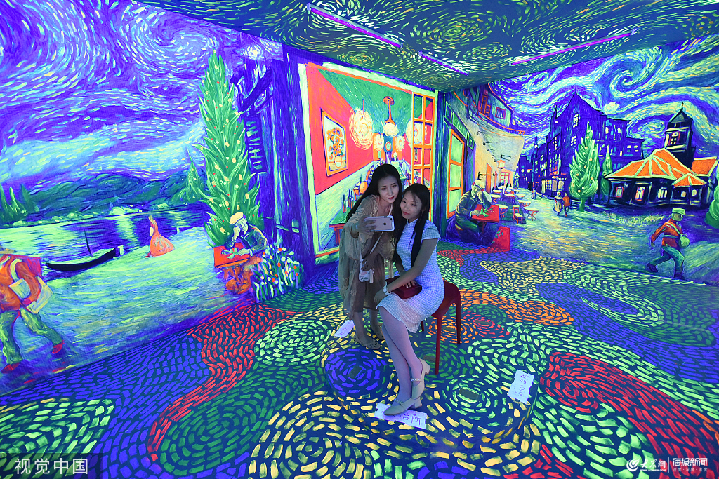 2019年8月17日,山西省太原市,一家名為梵高星空藝術(shù)館吸引了不少青年前來參觀體驗。