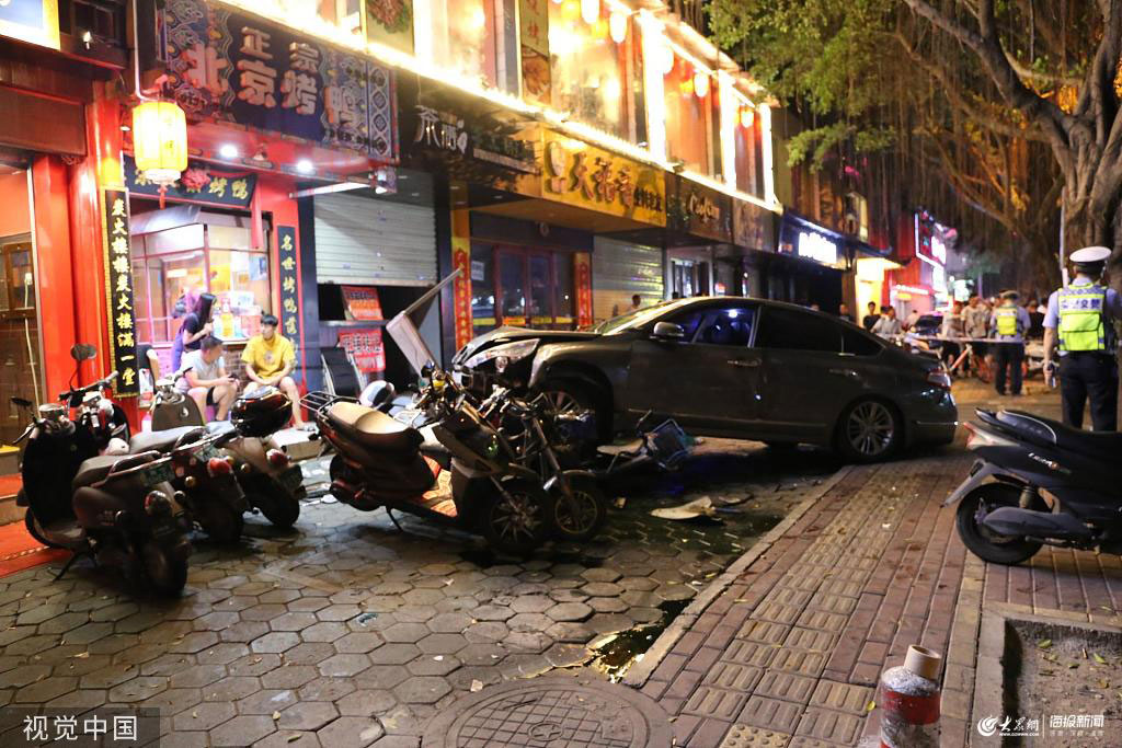 2019年8月21日21時許,廣西南寧市東葛葛村路口發(fā)生一起慘烈交通事故,一輛小轎車與多輛電動自行車及行人發(fā)生碰撞,造成2人死亡、3人受傷。接到報警后,南寧市公安局交警支隊民警迅速趕赴現場勘查處置,將肇事司機趙某控制。經現場檢測,趙某涉嫌酒后駕駛。林浩(廣西分社)/中新社/視覺中國