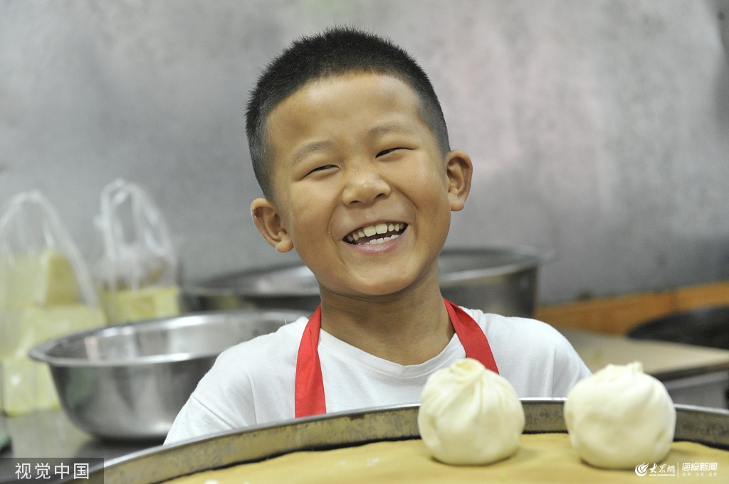 2019年8月22日,西安高陵區(qū)楊官寨菜市場(chǎng),7歲的趙澤華正在自家包子店里幫忙,他主要負(fù)責(zé)搟包子皮,小手拿著搟面杖,搟起皮來(lái)靈活利索。男孩在自家包子店幫忙一年多了,他主要負(fù)責(zé)搟包子皮,一天能搟五六百個(gè)包子皮。爸爸趙興民希望從小培養(yǎng)兒子熱愛(ài)勞動(dòng)的習(xí)慣,鍛煉吃苦耐勞的意志。同時(shí),也努力讓兒子全面發(fā)展,除了文化課不能落下之外,兒子還上著搏擊課和鋼琴課,搏擊課比賽得過(guò)冠軍,鋼琴?gòu)椀靡膊诲e(cuò)。